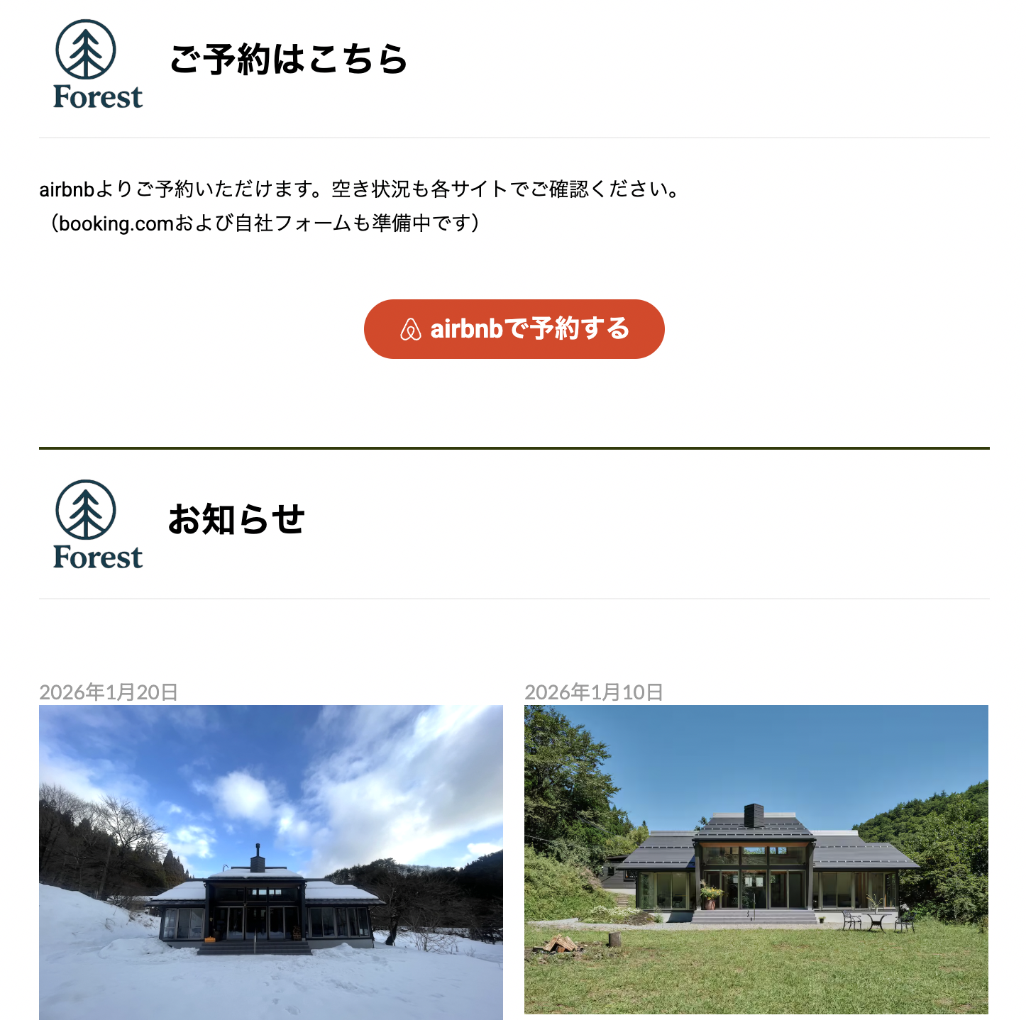 岐阜県高山市に一棟貸切リトリート施設「Forest ( 光の帯 | hikarinoobi )」公式サイト制作(仮)